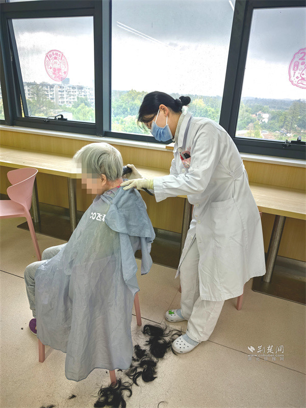 如今,科室護(hù)理人員跟著有經(jīng)驗(yàn)的護(hù)工學(xué)理發(fā),工具盒里總備著適配老人的用品,每月平均為2位患者理發(fā),“哄”著抗拒的老人接受照料,成了大家的拿手活。
