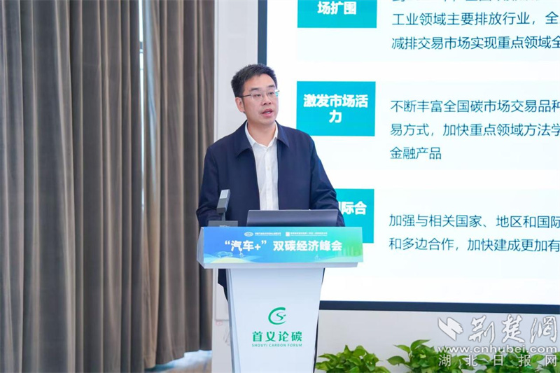 荊楚網(wǎng)(湖北日報網(wǎng))訊(通訊員 齊亮)2025年11月18日,由中國汽車技術研究中心有限公司(以下簡稱“中汽中心”)、碳排放權登記結算(武漢)有限責任公司(以下簡稱“中碳登”)共同主辦的“汽車+”雙碳經(jīng)濟峰會在武漢中碳登大廈順利召開。中汽中心副總經(jīng)理龔進峰、中碳登董事長尹俊出席大會。國家氣候變化專家委員會名譽主任、科技部原副部長劉燕華作主旨發(fā)言。武漢市、武昌區(qū)相關政府機構負責人,整車、零部件企業(yè)、金融機構代表及雙碳領域?qū)<覅⒓颖敬畏鍟?/p>