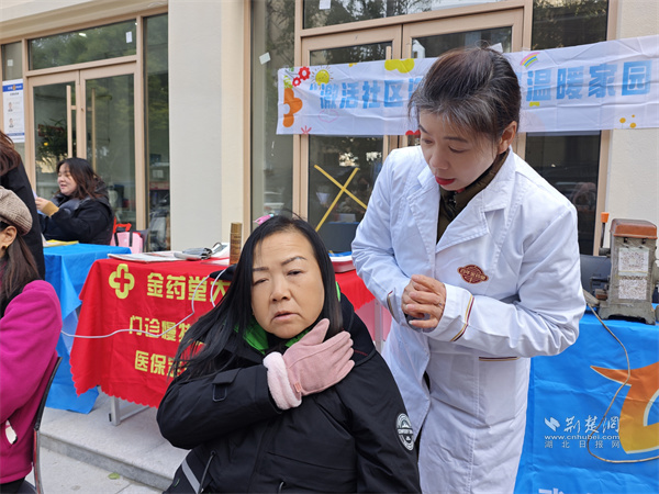 醫(yī)師與居民交流肩頸問(wèn)題。 通訊員供圖