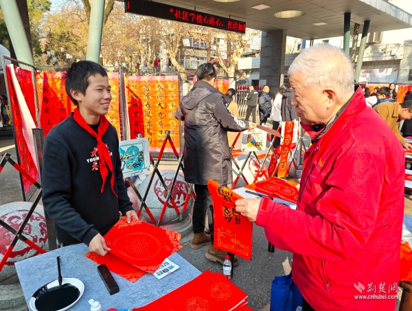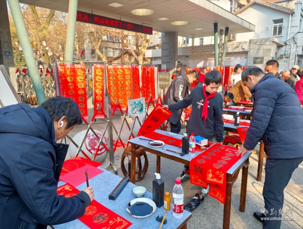 荊楚網(wǎng)(湖北日?qǐng)?bào)網(wǎng))訊(通訊員 胡雅菲 許小玲)為弘揚(yáng)中華優(yōu)秀傳統(tǒng)文化,凝聚區(qū)域共建合力,助力武昌區(qū)創(chuàng)建“中國書法之鄉(xiāng)”,1月15日上午,由湖北省教育學(xué)會(huì)書法教育專業(yè)委員會(huì)主辦、武昌區(qū)黃鶴樓街道花堤社區(qū)聯(lián)合共建單位湖北省武昌實(shí)驗(yàn)小學(xué)承辦的“社區(qū)學(xué)校心連心,喜送福聯(lián)迎新春”公益活動(dòng),在實(shí)驗(yàn)小學(xué)門口拉開帷幕。