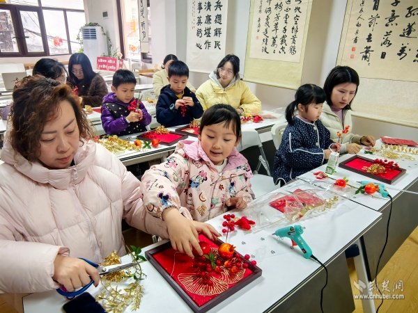 為迎接新春佳節(jié),傳承非遺手工技藝,“吉年添彩·手作年宵花畫框共創(chuàng)會”也在書房內(nèi)熱烈展開。活動以“筆墨書香里尋年味,非遺手作中傳文脈”為主題,吸引了眾多親子家庭與手工愛好者參與。