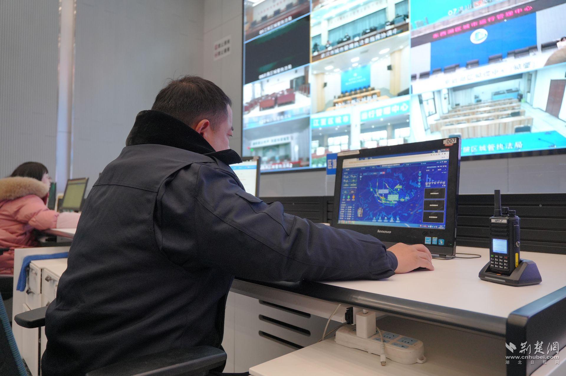 這是東西湖區(qū)本輪應(yīng)對(duì)低溫雨雪冰凍天氣的指揮中樞。調(diào)度大廳內(nèi),一套新升級(jí)的融雪防凍智慧應(yīng)用正在運(yùn)行:天氣變化、人員物資、道路狀態(tài)在同一平臺(tái)集中呈現(xiàn),重點(diǎn)路段通過視頻輪巡實(shí)時(shí)監(jiān)控,必要時(shí)可啟用無人機(jī)輔助巡查,實(shí)現(xiàn)對(duì)主干道路、橋梁、學(xué)校和商圈周邊的動(dòng)態(tài)掌控。