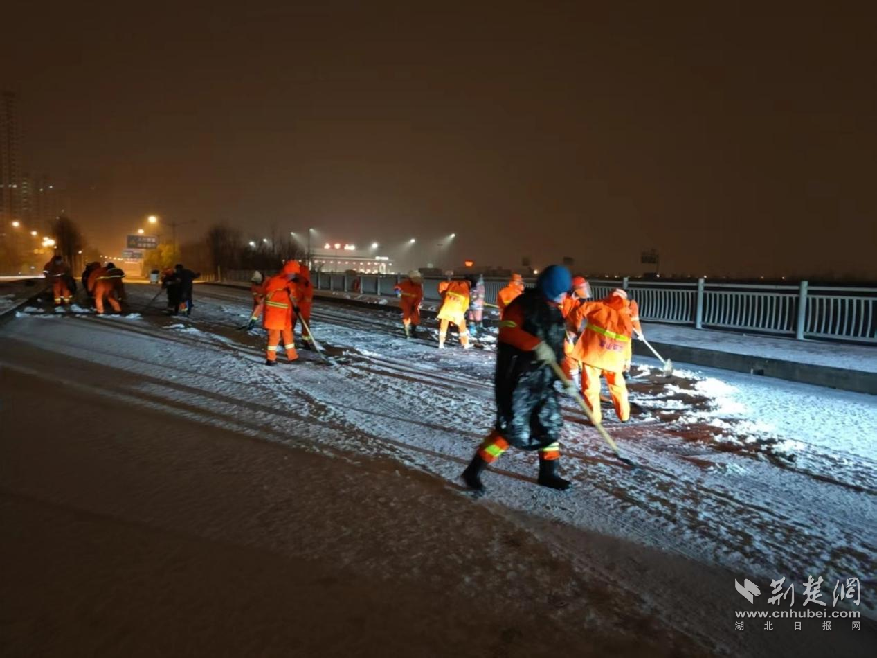 荊楚網(wǎng)(湖北日?qǐng)?bào)網(wǎng))訊(通訊員姜鵬)1月20日凌晨,武漢市迎來今冬首場降雪。為確保城市道路暢通,武漢經(jīng)開區(qū)軍山街道的環(huán)衛(wèi)工人提前上崗,在嚴(yán)寒中開展掃雪除冰作業(yè),并在交通高峰時(shí)段主動(dòng)幫助受困車輛,三小時(shí)內(nèi)徒手助推近40輛汽車脫困,成為風(fēng)雪中最暖心的“橙色力量”。