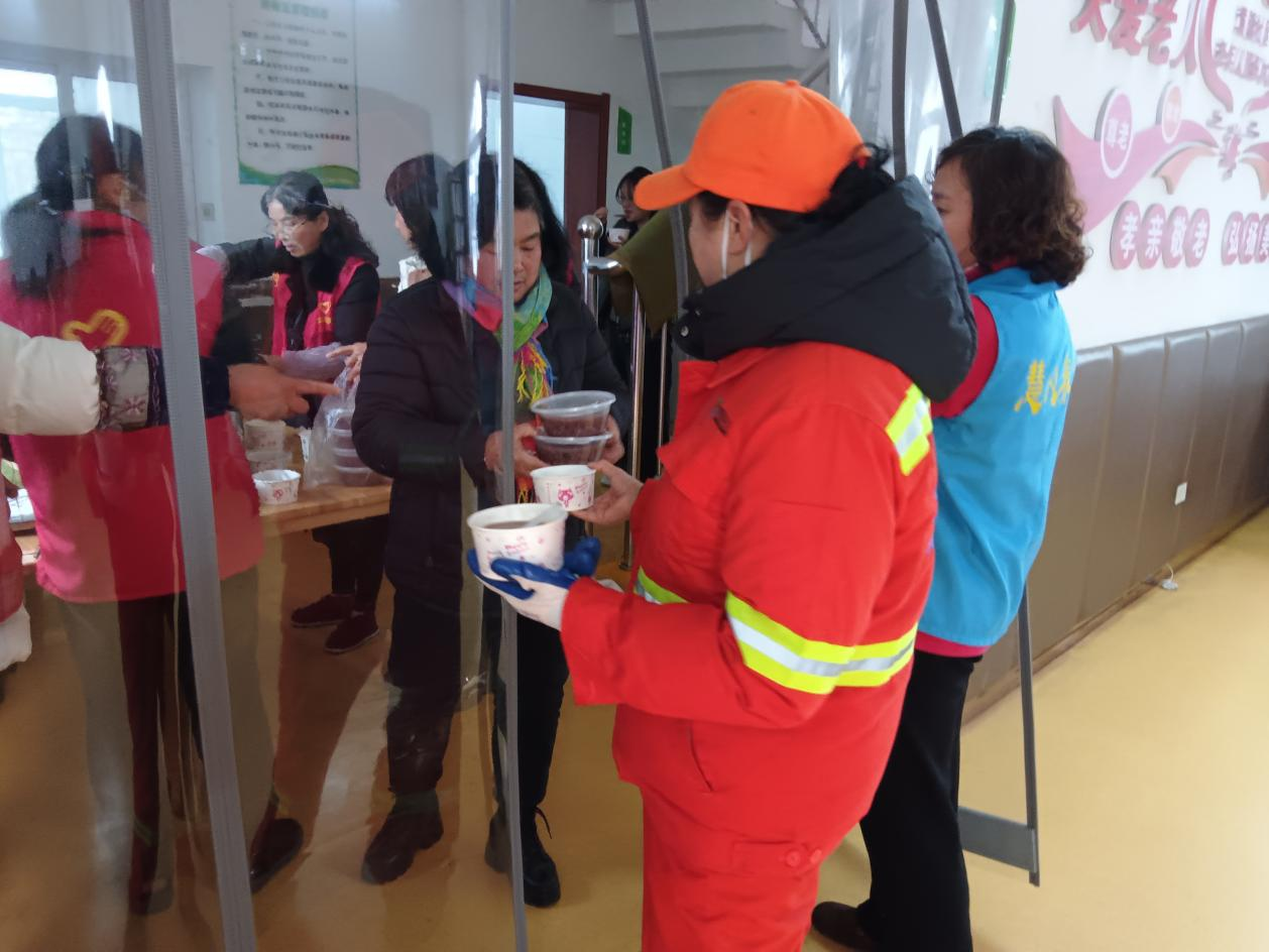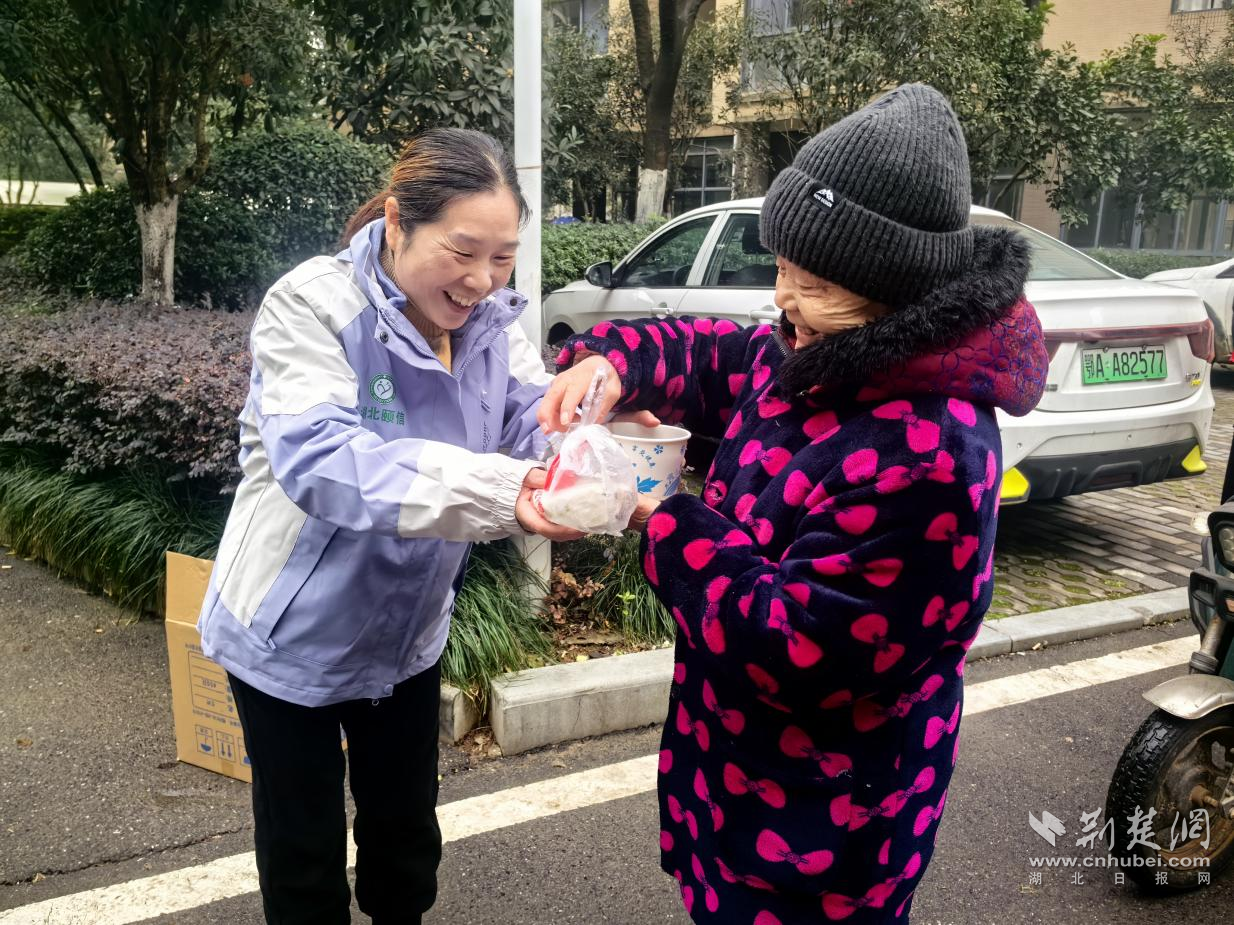 黃陵社區(qū)“暖心送粥隊(duì)”為社區(qū)老年居民送粥。通訊員供圖