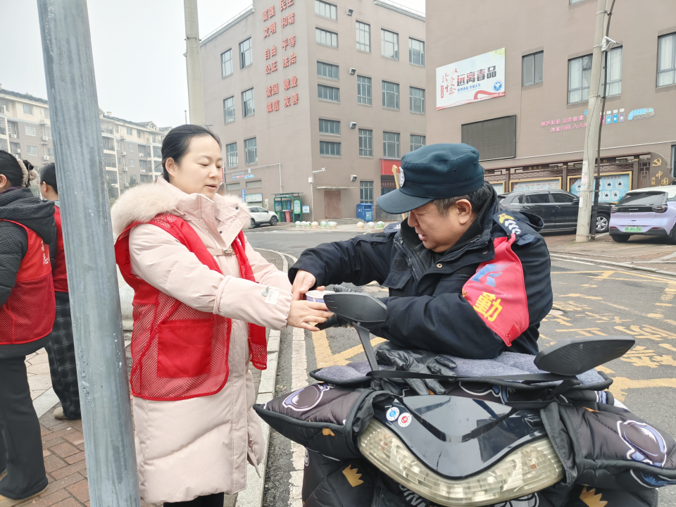 小軍山社區(qū)第一時(shí)間將熱粥送到了戶外工作者手中。通訊員供圖
