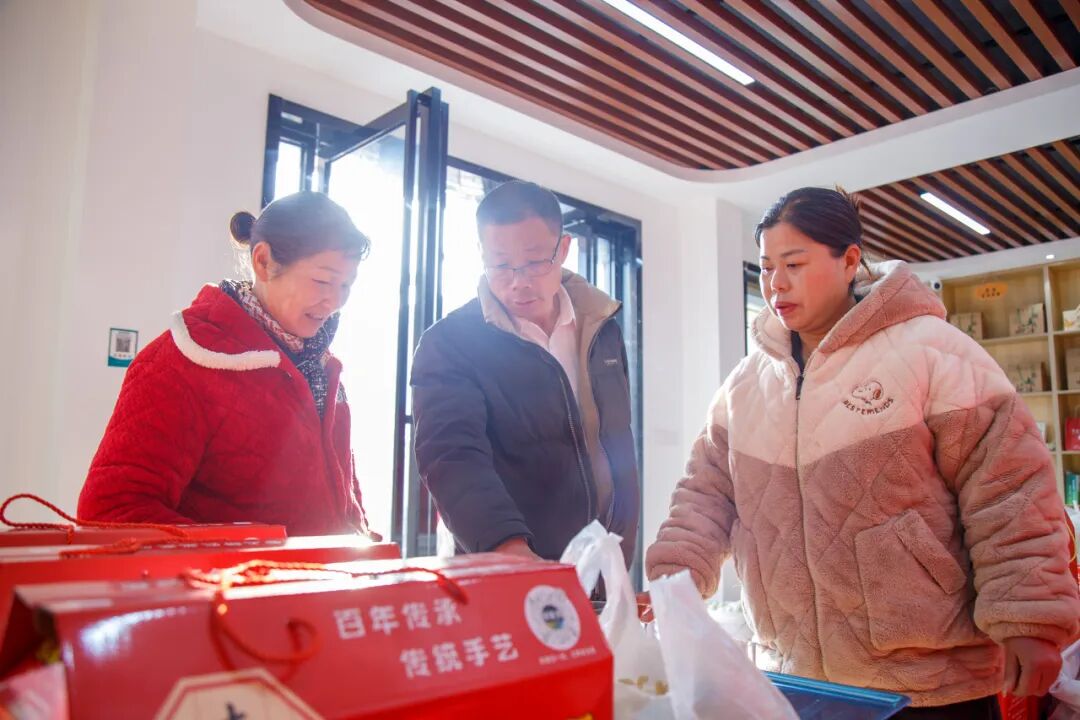 除了優(yōu)質(zhì)選品,在運(yùn)營模式上,基地還采用線上線下雙輪驅(qū)動(dòng)。線上以“祁家灣優(yōu)品”抖音直播間為主要陣地,組建了由5名村“兩委”干部構(gòu)成的直播團(tuán)隊(duì),定期開展直播帶貨,直播場(chǎng)景覆蓋生產(chǎn)現(xiàn)場(chǎng)等多種實(shí)地環(huán)境。線下則通過實(shí)體展示館進(jìn)行產(chǎn)品體驗(yàn)、零售以及面向企業(yè)與社區(qū)的團(tuán)購批發(fā)業(yè)務(wù),形成銷售閉環(huán)。