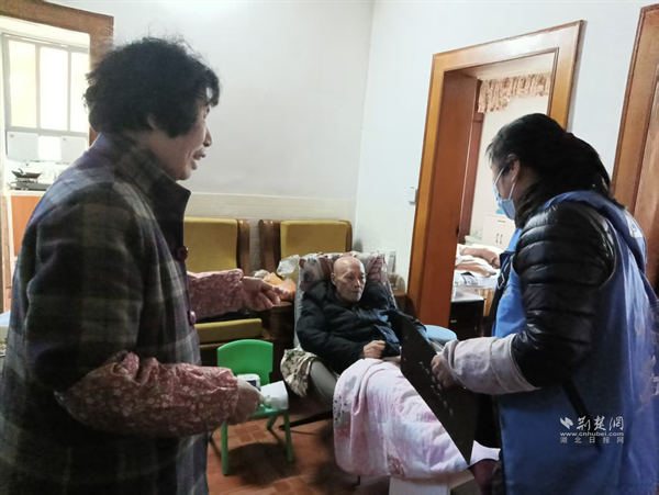 社區(qū)網(wǎng)格員上門看望高齡老人。 通訊員供圖