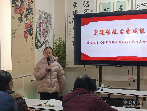 荊楚網(wǎng)(湖北日?qǐng)?bào)網(wǎng))訊(通訊員 吳玲麗)為深入貫徹落實(shí)《全民閱讀促進(jìn)條例》精神,推動(dòng)“全民參與、公益普惠”理念在基層落地生根,2月1日上午,武昌區(qū)黃鶴樓街道讀書(shū)社區(qū)在黃鶴書(shū)房舉辦“黨建領(lǐng)航?書(shū)香賦能”條例踐行啟動(dòng)活動(dòng)。社區(qū)班子成員、黨員代表、老年居民、新就業(yè)群體及青少年代表共同參與,共同開(kāi)啟社區(qū)全民閱讀新篇章。