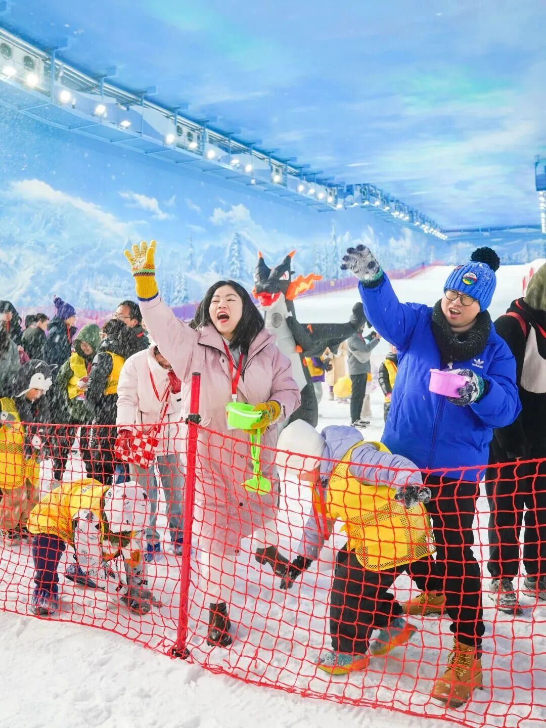 如果喜歡嗨一點(diǎn),趕快來(lái)「武漢冰雪中心」,這里春節(jié)超級(jí)歡樂(lè)??缒觌娨襞蓪?duì)+滑雪炫技賽,在冰天雪地里嗨到出汗。