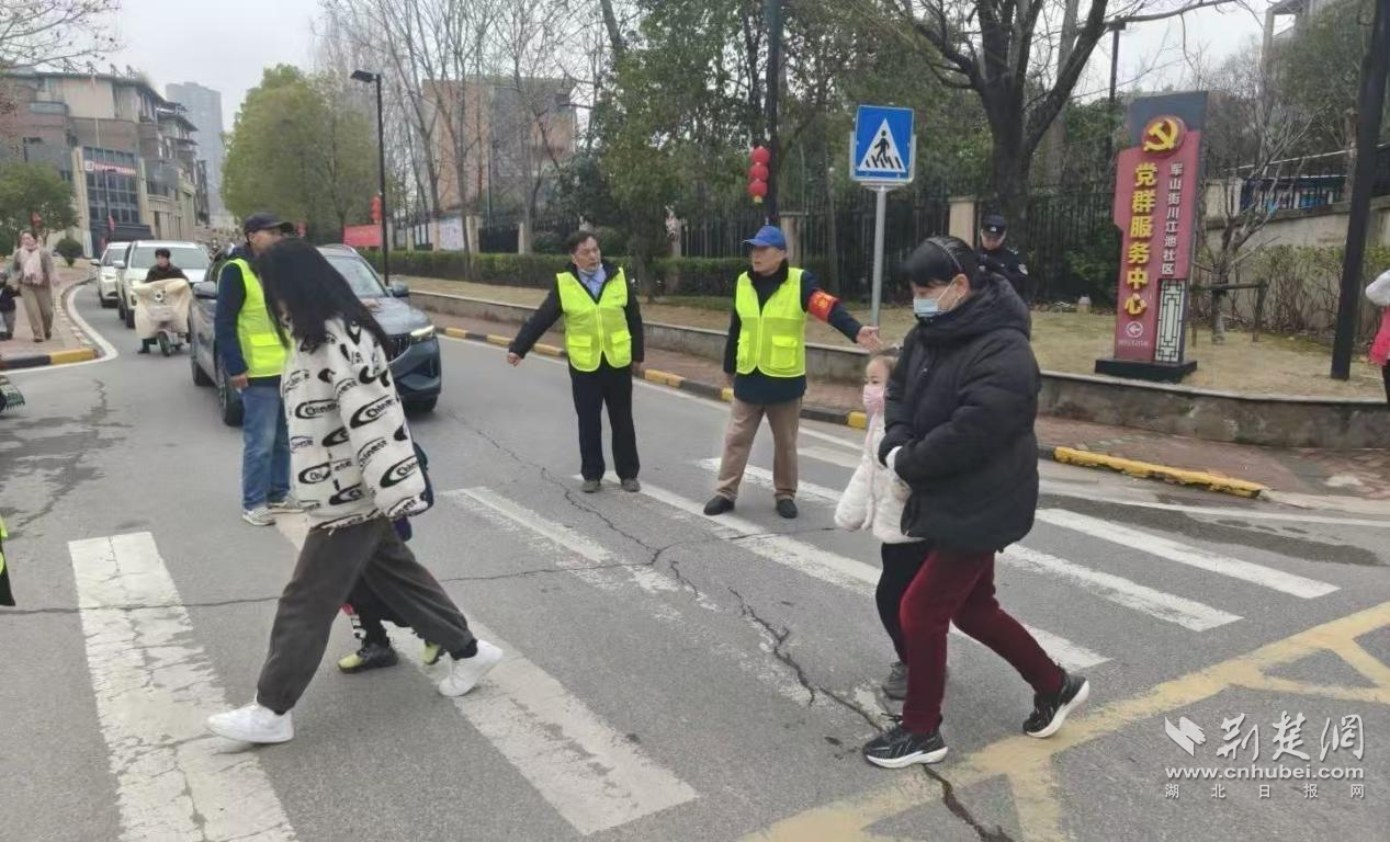荊楚網(wǎng)(湖北日報網(wǎng))訊(通訊員 吳曉琪、楊慕曦、曹悅、黃盈)春風(fēng)送暖,開學(xué)啟航。3月4日,2026年春季新學(xué)期開學(xué)第一天,武漢經(jīng)開區(qū)軍山新城蒲潭社區(qū)、龍湖社區(qū)、小軍山社區(qū)、川江池社區(qū)同步啟動春季開學(xué)護學(xué)專項行動,聯(lián)動社區(qū)志愿者、民警、物業(yè)等多方力量,在學(xué)校周邊引導(dǎo)接送車輛即停即走,護送學(xué)生安全通過馬路,及時排查消除各類安全隱患,用實際行動為孩子們筑起了一道安全的“防護墻”,為廣大師生營造了安全、有序、暢通的入學(xué)環(huán)境。