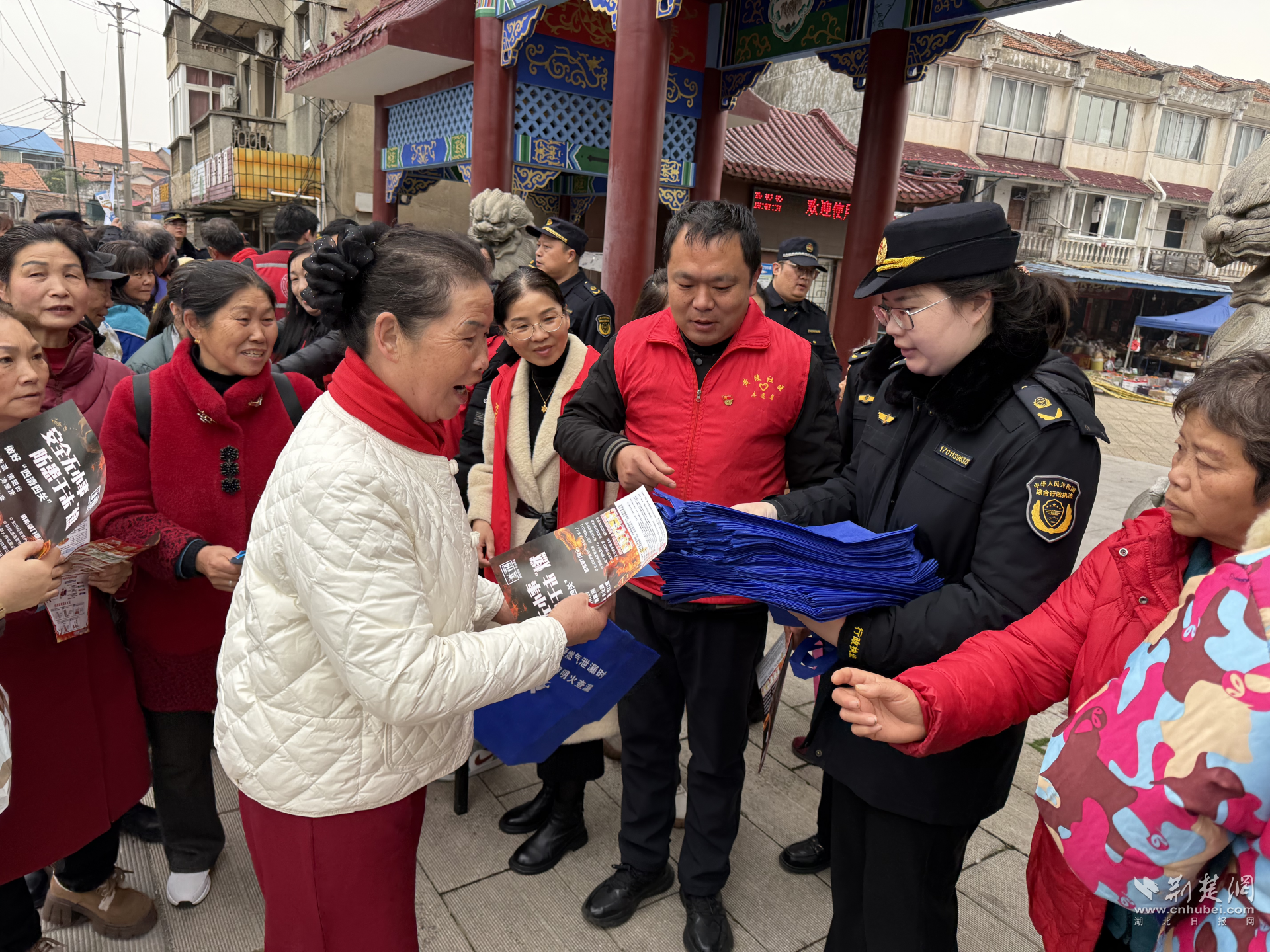 政策服務“送上門”,便民咨詢零距離。黃陵社區(qū)組織共建單位在黃陵社區(qū)集貿(mào)市場設(shè)置咨詢服務臺,結(jié)合“城管進社區(qū)”活動,聯(lián)動城管執(zhí)法隊員向居民發(fā)放《垃圾分類指引》、《市容管理條例解讀》等宣傳折頁,面對面解答養(yǎng)犬登記、違建防控、燃氣使用安全等熱點問題?,F(xiàn)場還設(shè)置了互動問答環(huán)節(jié),通過趣味答題的方式贈送環(huán)保袋、小燈籠等馬年主題紀念品,吸引百余名居民參與,讓政策法規(guī)“活”起來、接地氣。