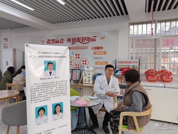 商居社會客廳經(jīng)過改造升級,如今每周二,黃鶴樓街社區(qū)衛(wèi)生服務(wù)中心的家庭醫(yī)生團(tuán)隊都會在此坐診,為居民提供血壓測量、血糖檢測、慢性病管理、健康咨詢等基礎(chǔ)服務(wù),并針對老年人、殘疾人等特殊群體開展個性化健康指導(dǎo)。