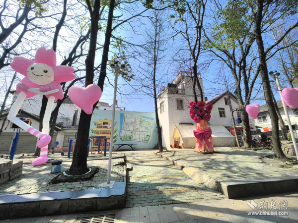 荊楚網(wǎng)(湖北日報網(wǎng))訊(通訊員 周俊芳 周佳穎)在武昌區(qū)黃鶴樓街道西廠口社區(qū)后宰門,一只巨型櫻花人偶氣?!白痹谙锟?,憨態(tài)可掬;抬眼望去,粉色愛心懸掛裝置隨風(fēng)輕搖,與錯落有致的花箱綠植、墻上的黃鶴樓手繪、街區(qū)地圖墻繪交織成趣。跑者未至,春意已滿巷。這是社區(qū)為迎接2026年武漢馬拉松賽事精心布置的“見面禮”。