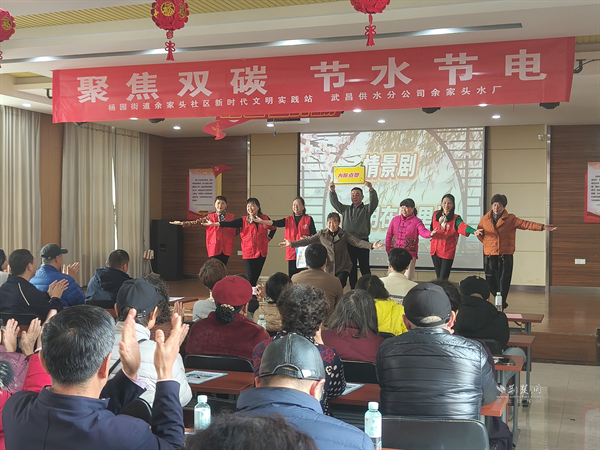 荊楚網(wǎng)(湖北日?qǐng)?bào)網(wǎng))訊(通訊員 魏文婷 侯本瑞)3月18日,在第34屆“世界水日”、第39屆“中國水周”到來之際,武昌區(qū)楊園街道余家頭社區(qū)新時(shí)代文明實(shí)踐站攜手武昌供水分公司余家頭水廠,共同舉辦百姓大舞臺(tái)“聚焦雙碳,節(jié)水節(jié)電”主題活動(dòng)?;顒?dòng)在武昌區(qū)新時(shí)代文明實(shí)踐中心指導(dǎo)下,將綠色低碳理念融入文藝展演、科普互動(dòng)、便民服務(wù),為居民奉上一場(chǎng)“聽得懂、看得見、用得上”的生態(tài)文明實(shí)踐課。