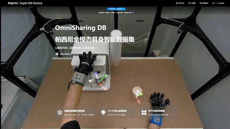 通過全球首創(chuàng)“以人為中心(Human-Centered)”的全模態(tài)高精度實采具身數(shù)據(jù)體系實現(xiàn)高保真數(shù)據(jù)采集,是帕西尼東西湖數(shù)據(jù)采集工廠的核心亮點,其中尤為突出的是包含極度稀缺的高精度觸覺感知數(shù)據(jù)。