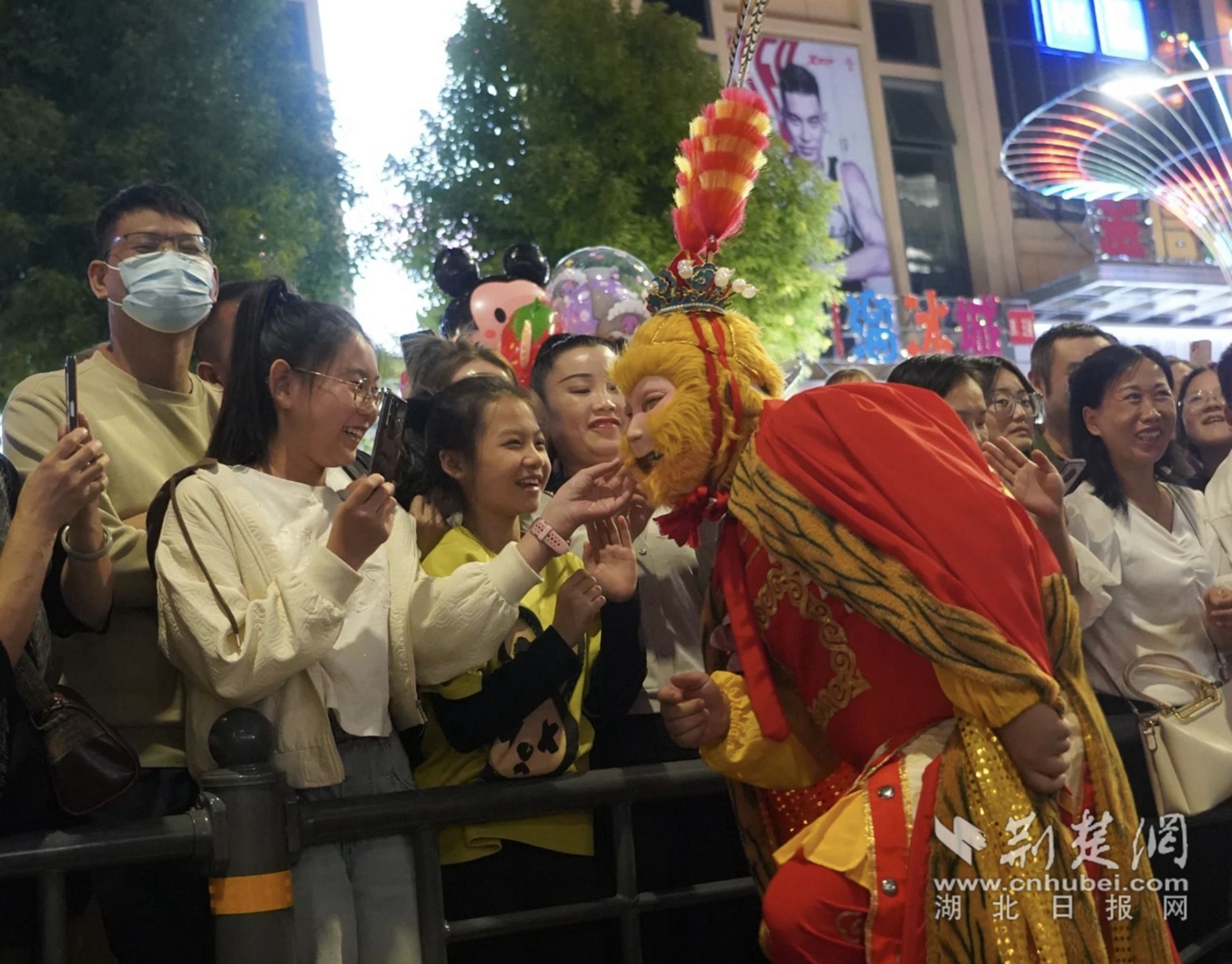 七夕“南浦‘巧’相逢”主題活動當(dāng)天,南浦路化身浪漫“星河鵲橋”,歡聲笑語不斷;國慶狂歡夜里,國潮歌舞、西游記主題秀、機(jī)器人舞蹈秀、互動游戲輪番上演;中秋音樂節(jié)上,主持人“李白”串場、熱干面樂隊方言演唱、有獎猜燈謎、吟詩互動精彩不?!?/p>