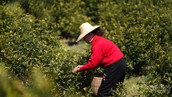 荊楚網(wǎng)(湖北日報網(wǎng))訊(通訊員 陳祥 陳鈺)一芽一葉一抹香,一人一簍采茶忙。4月9日,湖北省蘄春縣大同鎮(zhèn)操山村黃金茶種植基地里,茶農(nóng)們正在搶摘清明節(jié)后的黃金茶,為之后的大規(guī)模炒制提供新鮮原料。