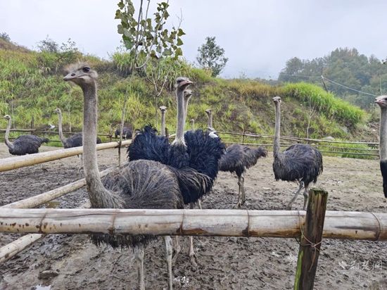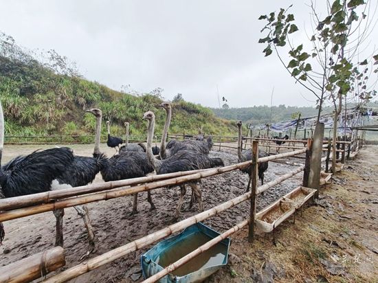 2020年春節(jié)期間,劉富高返鄉(xiāng)創(chuàng)業(yè)承包了組里多年的荒山,修通了簡(jiǎn)易路,搭建了宿舍,做起了圍欄。首先從廣東購(gòu)回了60只小鴕鳥(niǎo)試養(yǎng),在精心的喂養(yǎng)中成活率達(dá)到了98%。