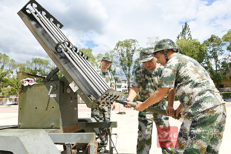26日,在崇陽縣港口鄉(xiāng)中學,該縣氣象局工作人員正在此架設(shè)火箭炮,守候?qū)α髟茖?,抓住有利時機實施人工增雨抗旱作業(yè)。