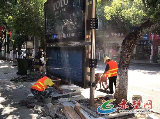 赤壁網(wǎng)消息(記者 聶愛陽)近日,在赤壁城區(qū)公交站臺(tái)、大眾餐館、家聯(lián)超市、老水利局、一橋……都能看到他們的身影——烈日下的一抹桔,用電鉆、角鋤、鐵鍬撬動(dòng)原有的地面,用泥漿、錘頭、抹泥刀,鋪設(shè)上全新的大理石。