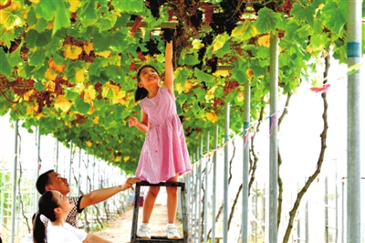 10月2日,嘉魚(yú)縣新街鎮(zhèn)世外葡萄園,一名小女孩正在體驗(yàn)采摘樂(lè)趣。