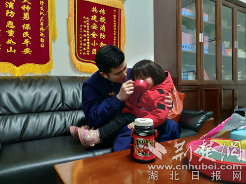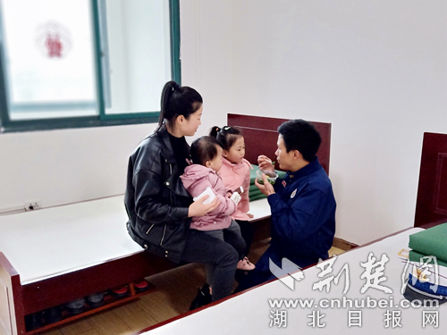 消防員堅(jiān)守崗位家人來(lái)隊(duì)陪值班。(通訊員 徐聰 攝)