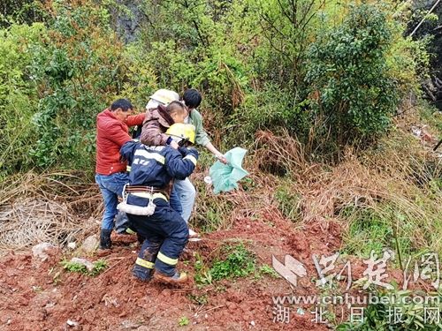 圖為消防員救出被困人員現(xiàn)場。 通訊員 朱濤攝