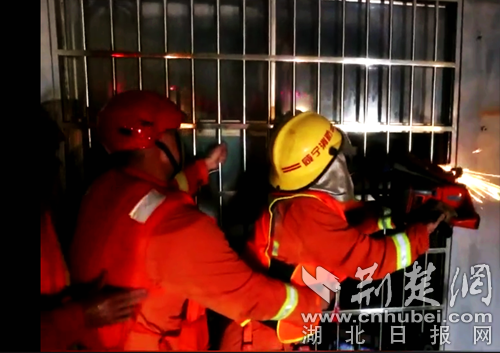 圖為消防員破拆防盜網(wǎng)救援現(xiàn)場(chǎng)。通訊員 葛棟 攝