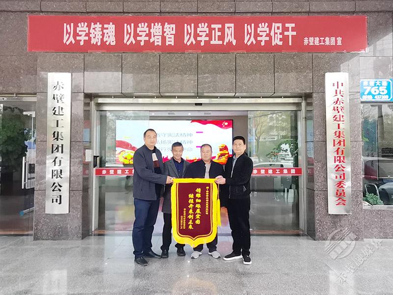11月20日,神山鎮(zhèn)鐘鳴村村支書易正軍帶領(lǐng)村委會成員及村民代表,將一面寫著“精雕細(xì)琢展宏圖,繼往開來創(chuàng)未來”的錦旗送到赤壁建工集團(tuán),以表達(dá)他們對建工集團(tuán)水建公司在該村高標(biāo)準(zhǔn)農(nóng)田改造工作中,所付出的辛勤勞動的感謝之情。