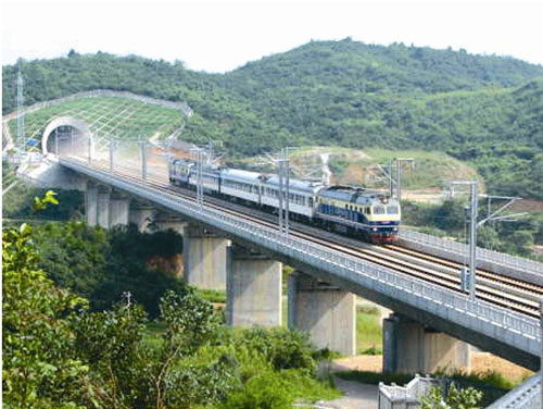圖為:武廣客專(zhuān)要穿越層巒疊嶂 圖片來(lái)源:中國(guó)中鐵網(wǎng)站